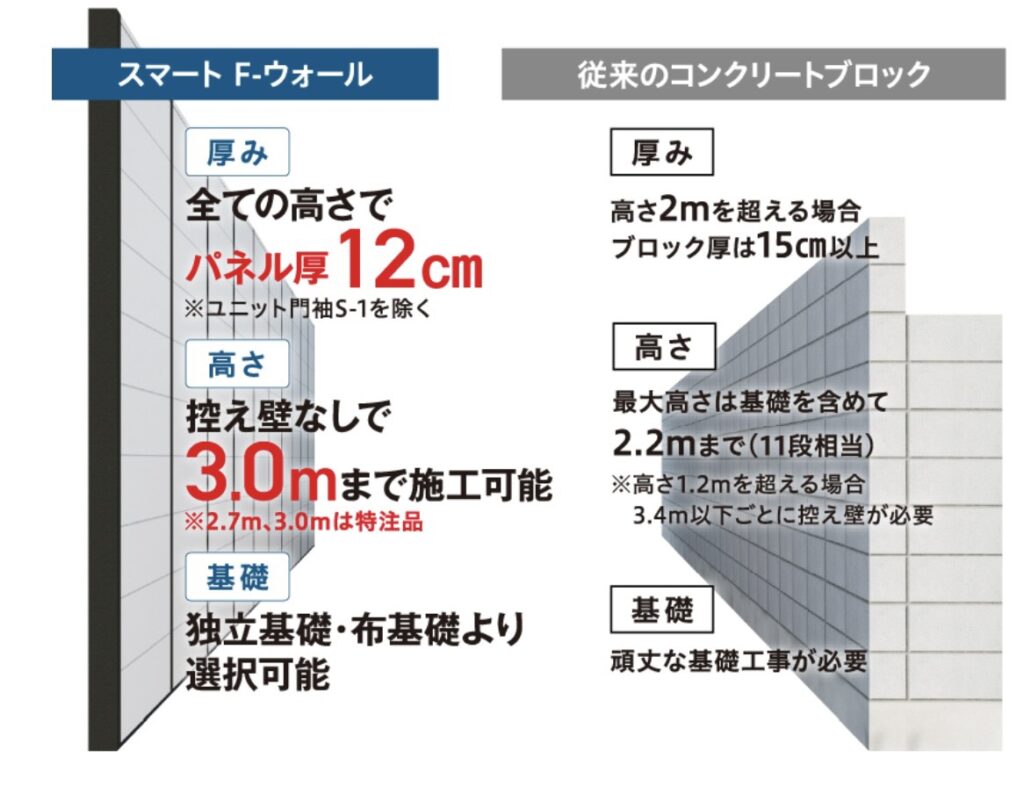 従来のブロック塀とは異なり、軽量で扱いやすいのに十分な強度を確保。施工性と耐久性を両立しています。