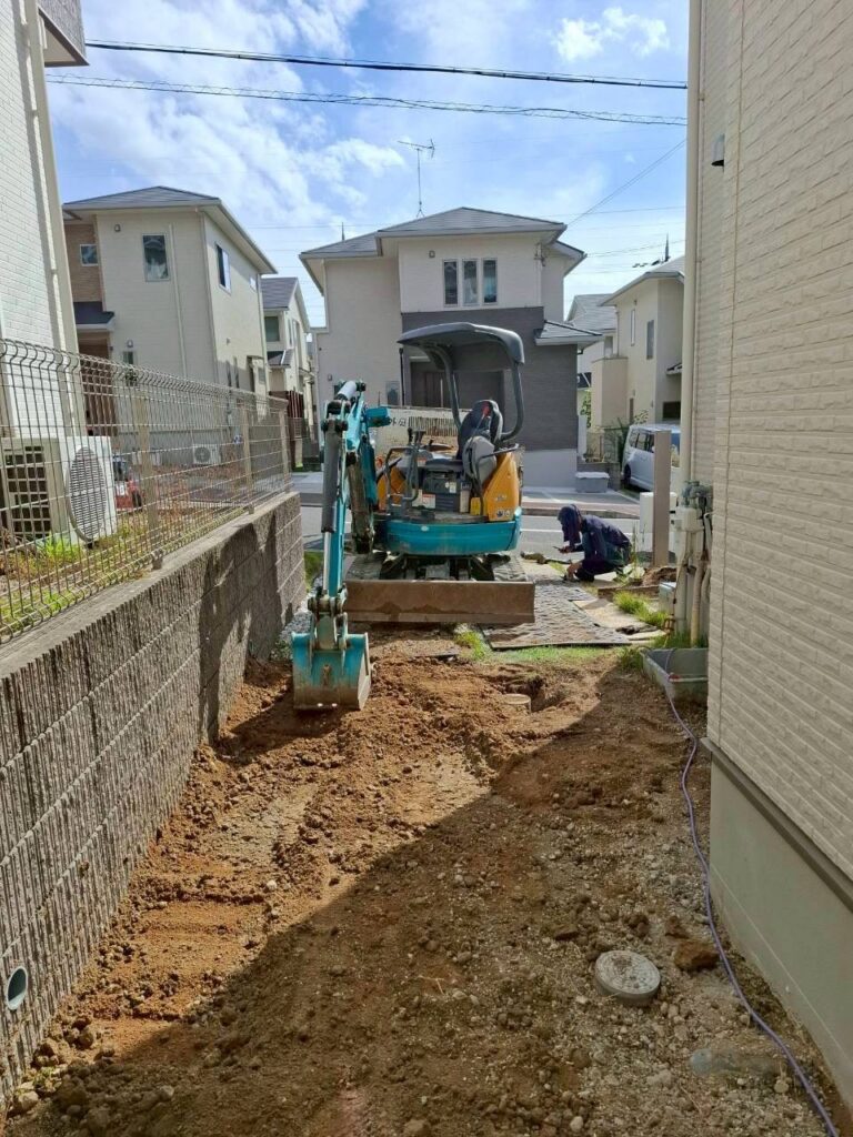 また、敷地の状況によっては配管や既存構造物に注意しながら作業を進める必要があるため、慎重な確認を行いながら施工しています。