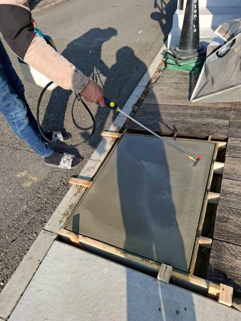均一に塗ることで、砂利がしっかりと浮き出て、