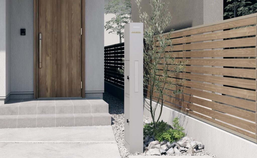 スリムなフォルムに3辺合計80サイズの宅配便まで受け取れる宅配ボックスを搭載。