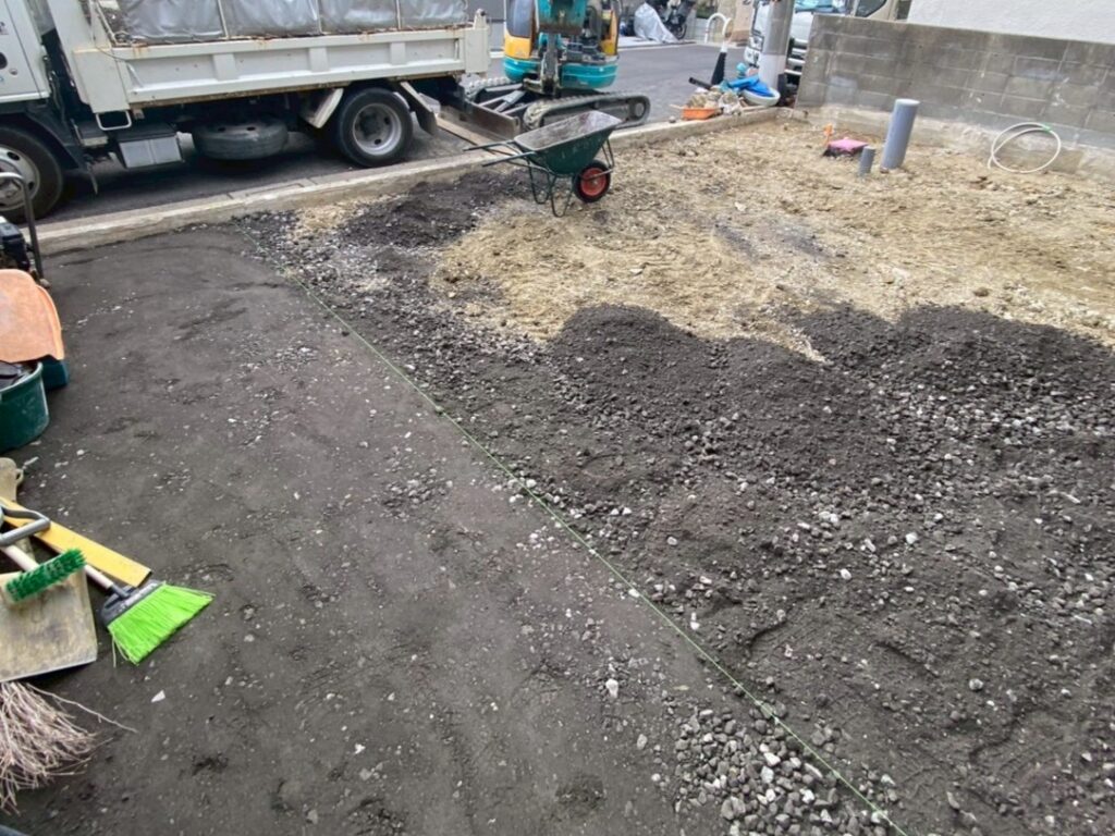 次にやっているのが 砕石敷き(路盤づくり) 👷‍♂️