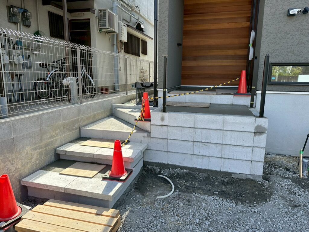 本日は玄関アプローチの階段工事を行いました。