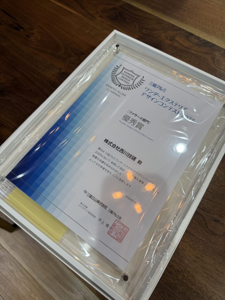 三協アルミ ワンダーエクステリアデザインコンテスト2025 ファサード部門にて優秀賞をいただきました。