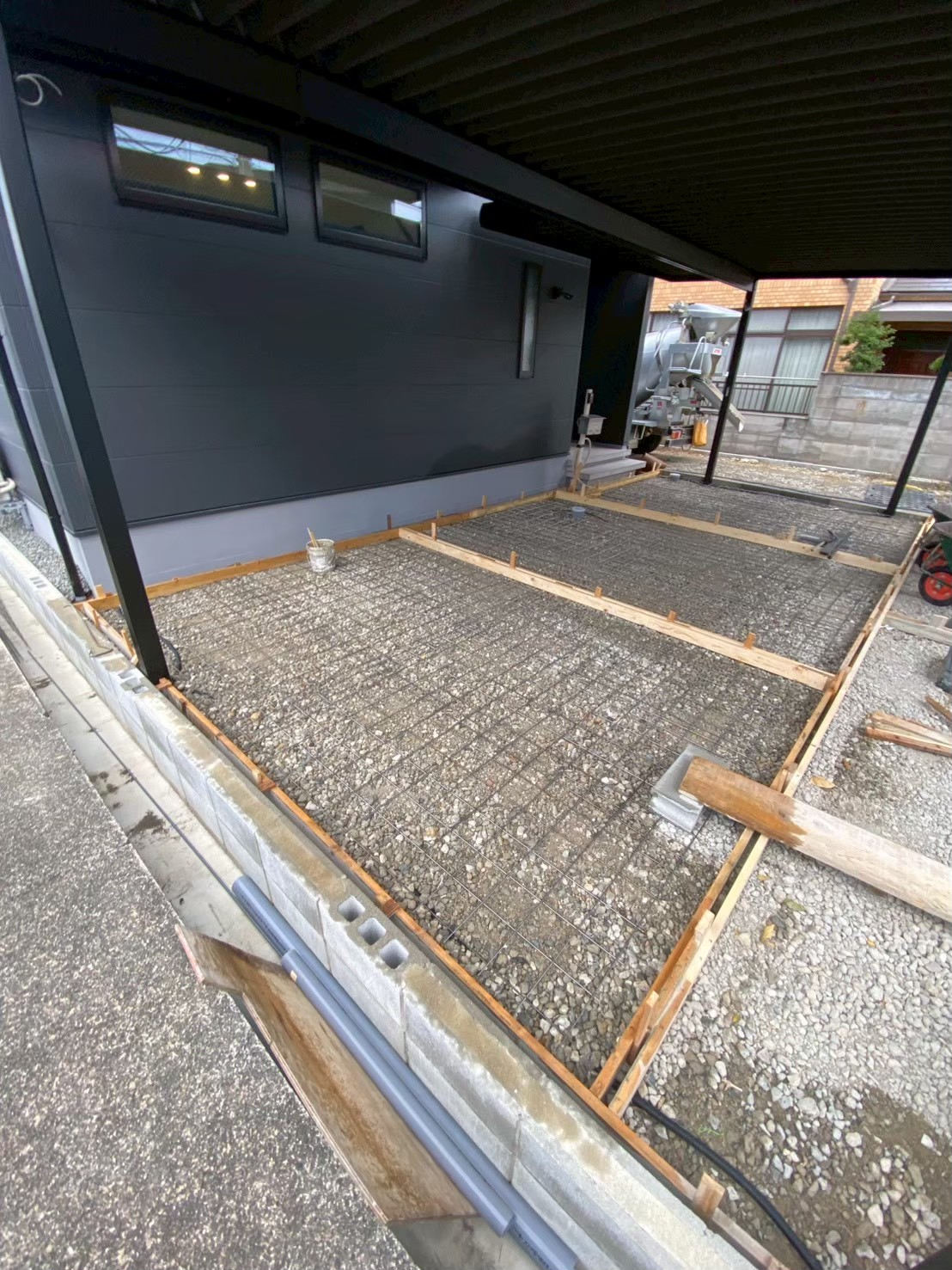 枠を組み メッシュ筋敷き 土間コンクリート打設していきます