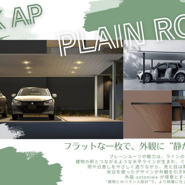 徹底的に追求したアルミ屋根カーポート**で、水平・垂直を基調とした洗練されたデザイン